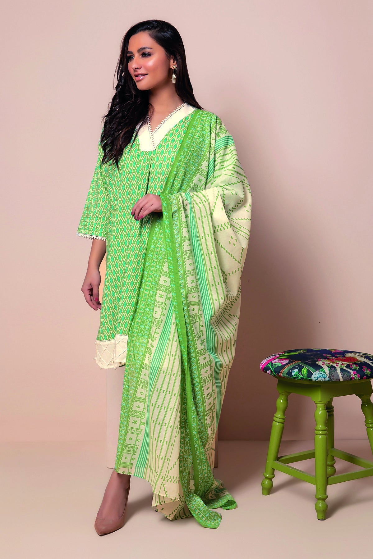 A22107 Green Khaadi Online Spring Summer is Original Ladies Clothing Brand, and provides both Styles shalwar kameez suits and kurtis.