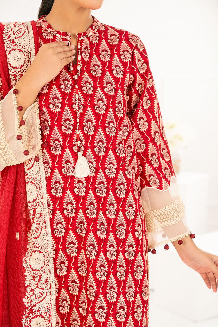The CN-52006 Khaddar Unstitched features a captivating blend of traditional and contemporary elements. The intricate embroidery, meticulously executed with delicate threads, adds a touch of sophistication to the design. The vibrant colors and patterns used in the embroidery create a visually stunning effect, making the ensemble perfect for special occasions. The silhouette of the CN-52006 is both flattering and comfortable, ensuring that the wearer feels confident and graceful. The Khaddar fabric, known for its breathability and softness, provides a luxurious feel against the skin, making it ideal for the warmer months.