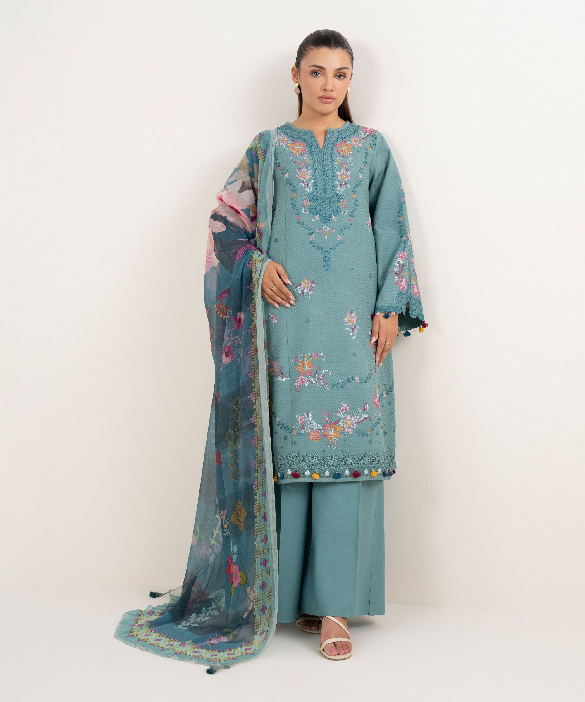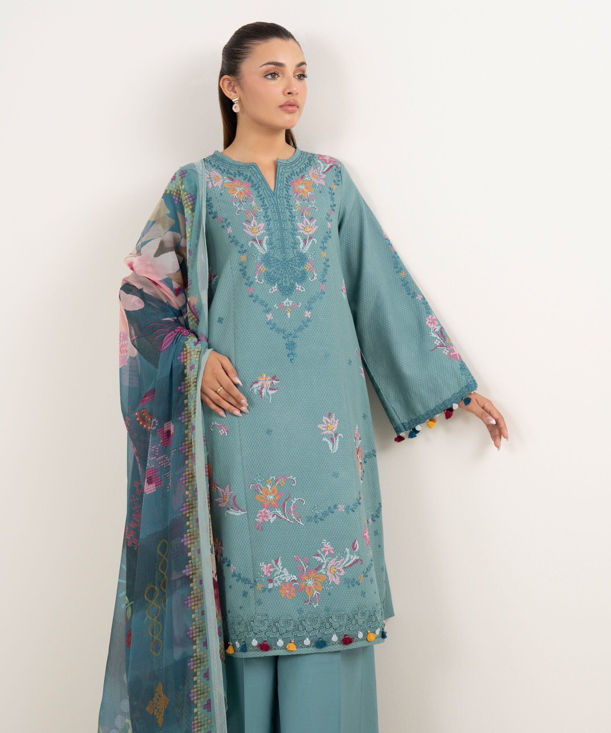 Sapphire a renowned Pakistani fashion brand, has consistently captivated the hearts of fashion enthusiasts with its exquisite designs and impeccable craftsmanship. One such masterpiece that has garnered immense admiration is the 0PESG25V514B Dobby Unstitched. This elegant ensemble, crafted from premium quality Dobby fabric is a testament to Sapphire commitment to timeless style and comfort.