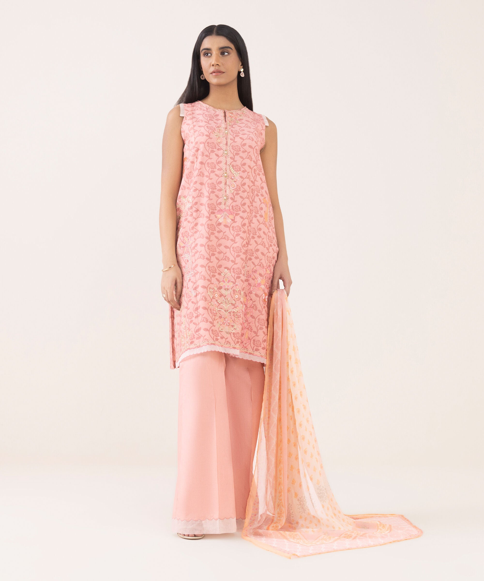 The 0U3PEST25V61 Jacquard Unstitched features a captivating blend of traditional and contemporary elements. The intricate embroidery, meticulously executed with delicate threads, adds a touch of sophistication to the design. The vibrant colors and patterns used in the embroidery create a visually stunning effect, making the ensemble perfect for special occasions. The silhouette of the 0U3PEST25V61 is both flattering and comfortable, ensuring that the wearer feels confident and graceful. The Jacquard fabric, known for its breathability and softness, provides a luxurious feel against the skin, making it ideal for the warmer months.