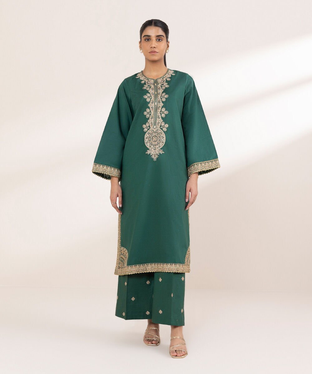 The Embroidered Crosshatch Shirt 3PTES25V222S Lehengas Pakistani Clothes features a captivating blend of traditional and contemporary elements. The intricate embroidery, meticulously executed with delicate threads, adds a touch of sophistication to the design. The vibrant colors and patterns used in the embroidery create a visually stunning effect, making the ensemble perfect for special occasions. The silhouette of the Embroidered Crosshatch Shirt 3PTES25V222S is both flattering and comfortable, ensuring that the wearer feels confident and graceful. The Lehengas fabric, known for its breathability and softness, provides a luxurious feel against the skin, making it ideal for the warmer months.