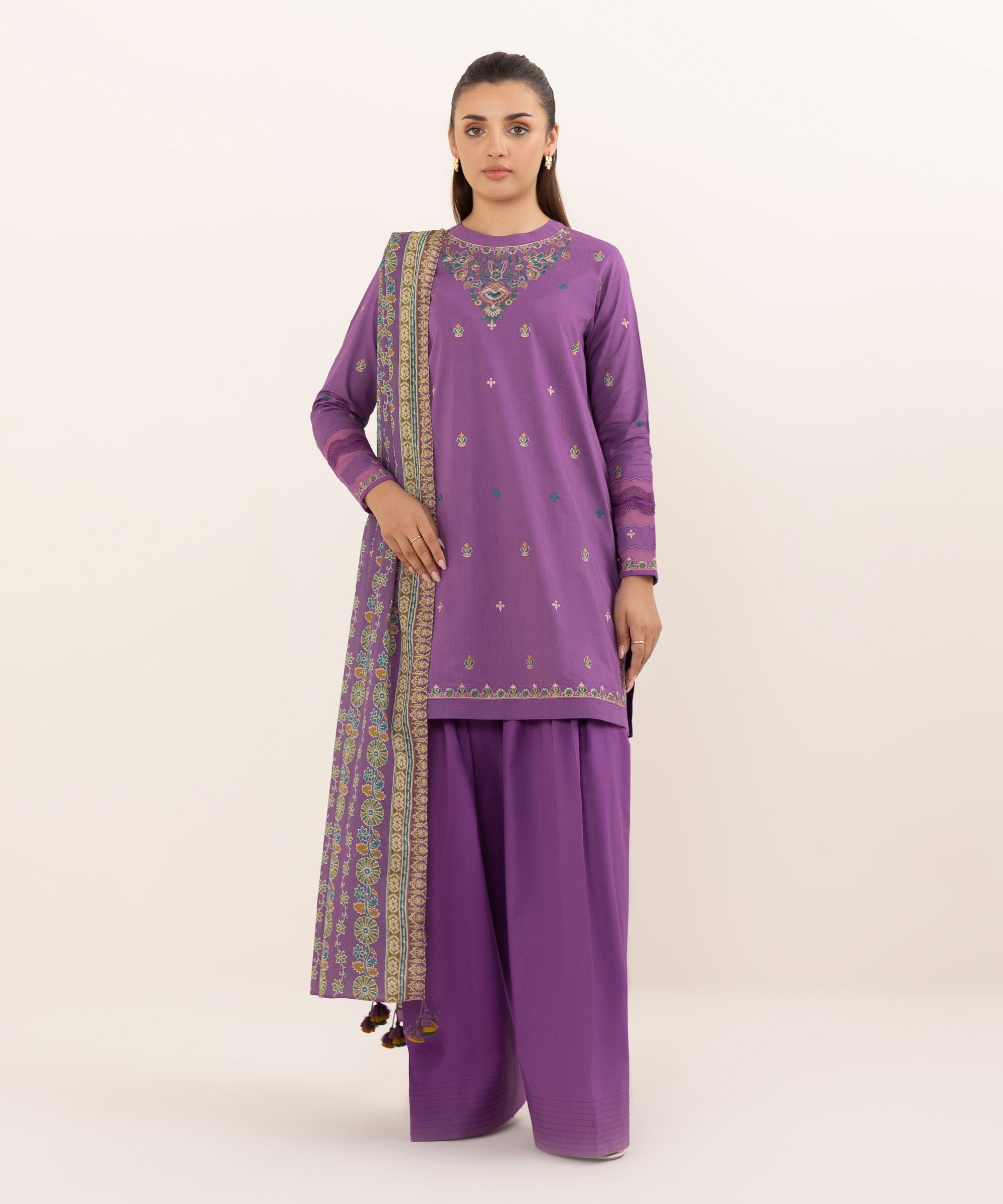 The U3PEDY25V626 Lawn Unstitched features a captivating blend of traditional and contemporary elements. The intricate embroidery, meticulously executed with delicate threads, adds a touch of sophistication to the design. The vibrant colors and patterns used in the embroidery create a visually stunning effect, making the ensemble perfect for special occasions. The silhouette of the U3PEDY25V626 is both flattering and comfortable, ensuring that the wearer feels confident and graceful. The Lawn fabric, known for its breathability and softness, provides a luxurious feel against the skin, making it ideal for the warmer months.