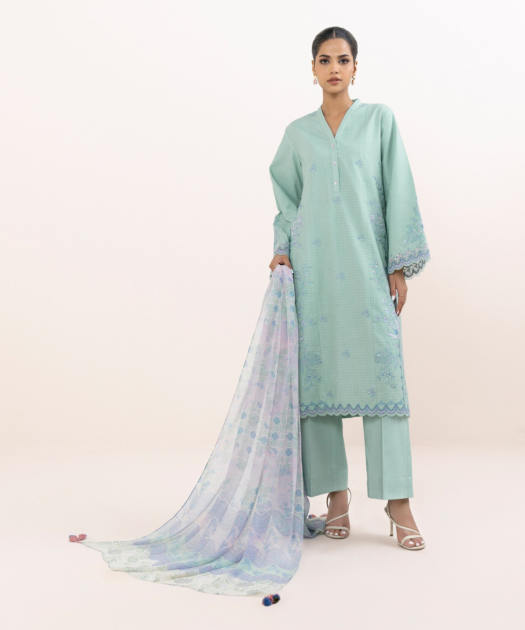 Sapphire U3PEJQ25V618 Linen Jacquard Unstitched is typically part of the brand's Jaquard Intermix Collection, a highly anticipated annual release that showcases the latest trends and designs. The Jaquard Intermix Collection is renowned for its festive and vibrant aesthetic, and the U3PEJQ25V618 embodies this spirit perfectly.