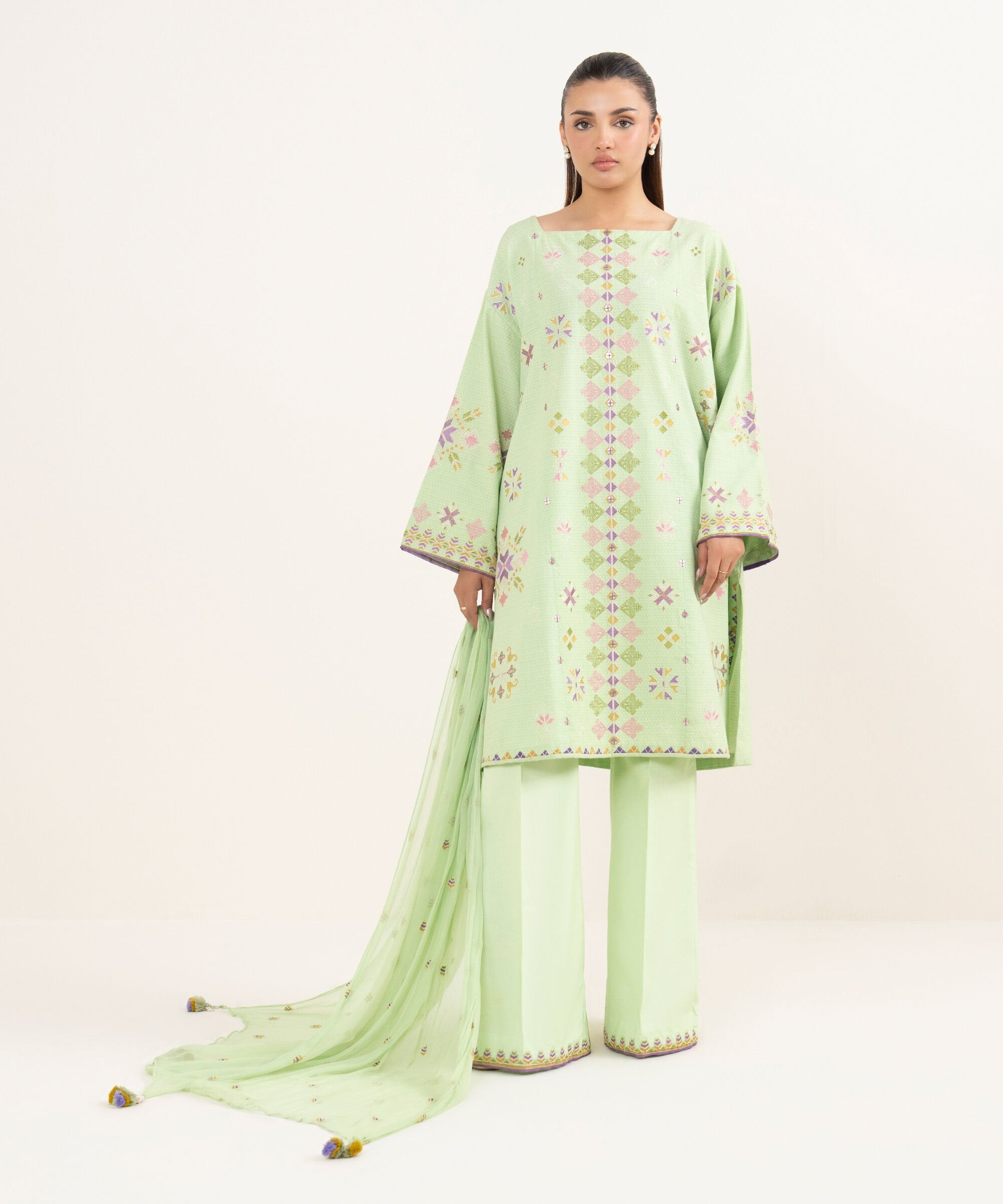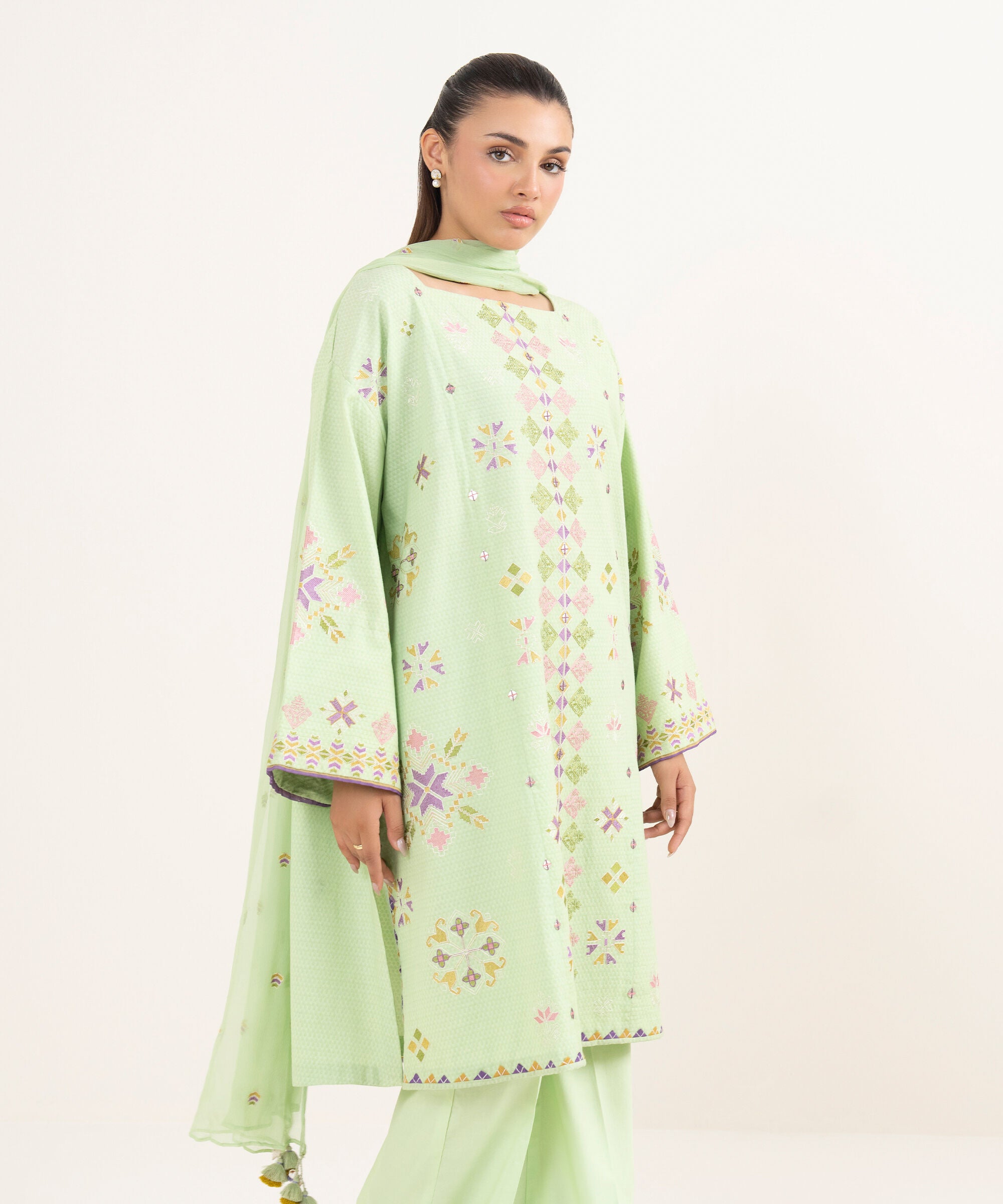 Sapphire a renowned Pakistani fashion brand, has consistently captivated the hearts of fashion enthusiasts with its exquisite designs and impeccable craftsmanship. One such masterpiece that has garnered immense admiration is the U3PEST25V510 Dobby Unstitched. This elegant ensemble, crafted from premium quality Dobby fabric is a testament to Sapphire commitment to timeless style and comfort.