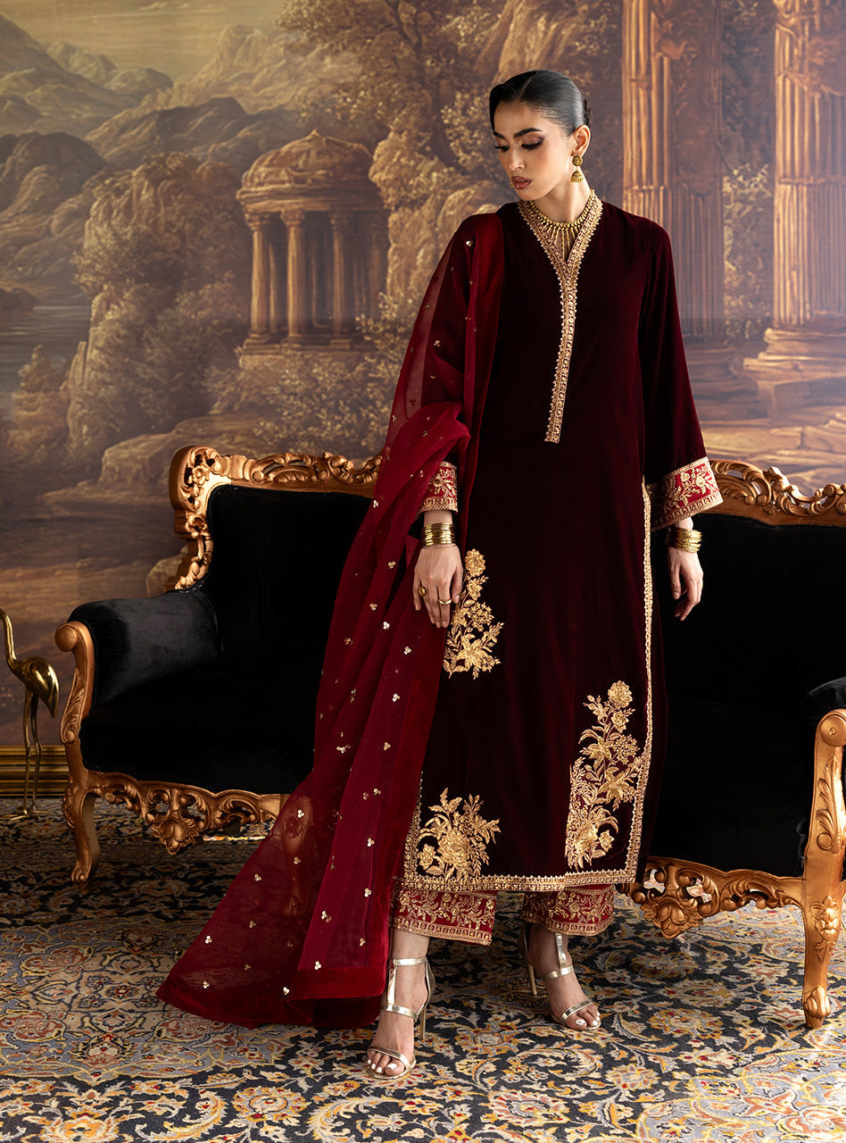 Zainab Chottani Nur Long Shirt Velvet Stitched is typically part of the brand's Velura Velvet Edit, a highly anticipated annual release that showcases the latest trends and designs. The Velura Velvet Edit is renowned for its festive and vibrant aesthetic, and the Nur Long Shirt embodies this spirit perfectly.